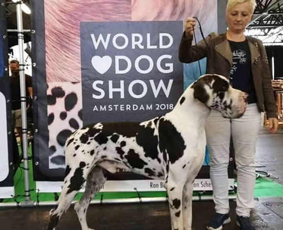 大丹犬(丹麥——布達(dá)佩斯)布達(dá)佩斯的******犬展,沒(méi)有留在現(xiàn)場(chǎng)觀看,但是后來(lái)跟犬主聊天,他的寶寶全場(chǎng)******,為你鼓掌。