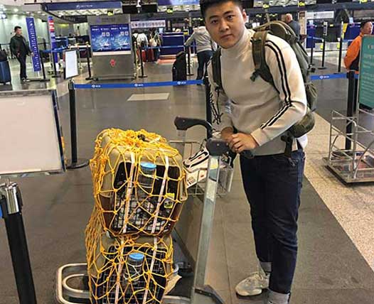 英國(guó)斗牛犬(美國(guó)——中國(guó))因?yàn)槌赡暧⑴O奶?**怕中暑,專(zhuān)業(yè)的寵物保姆給寶寶航空箱放了冷凍礦泉水瓶來(lái)給它降溫。即使長(zhǎng)途運(yùn)輸,寶寶狀態(tài)非常好,在辦公室等待主人接他回家,主人非常滿意,感恩